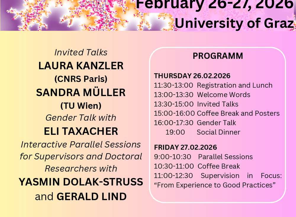 Graz Women in Math is hosting the sixth “Austrian Day of Women in Mathematics” on 26-27 February 2026, organized by the Austrian Association of Women in Mathematics,.